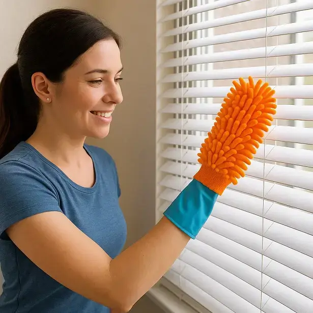 - Rękawica antystatyczna – nawlecz ją na rękę i jednym przeciągnięciem możesz wytrzeć kilka lameli naraz.