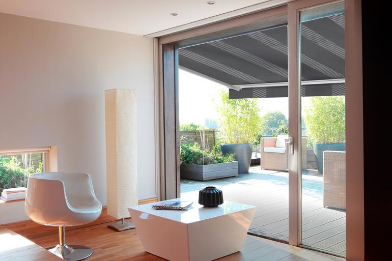 Markizy można wyposażyć w czujnik słońca i wiatru, który umożliwi automatyczne wyciąganie przy słonecznej pogodzie i zaciąganie, kiedy zacznie wiać.