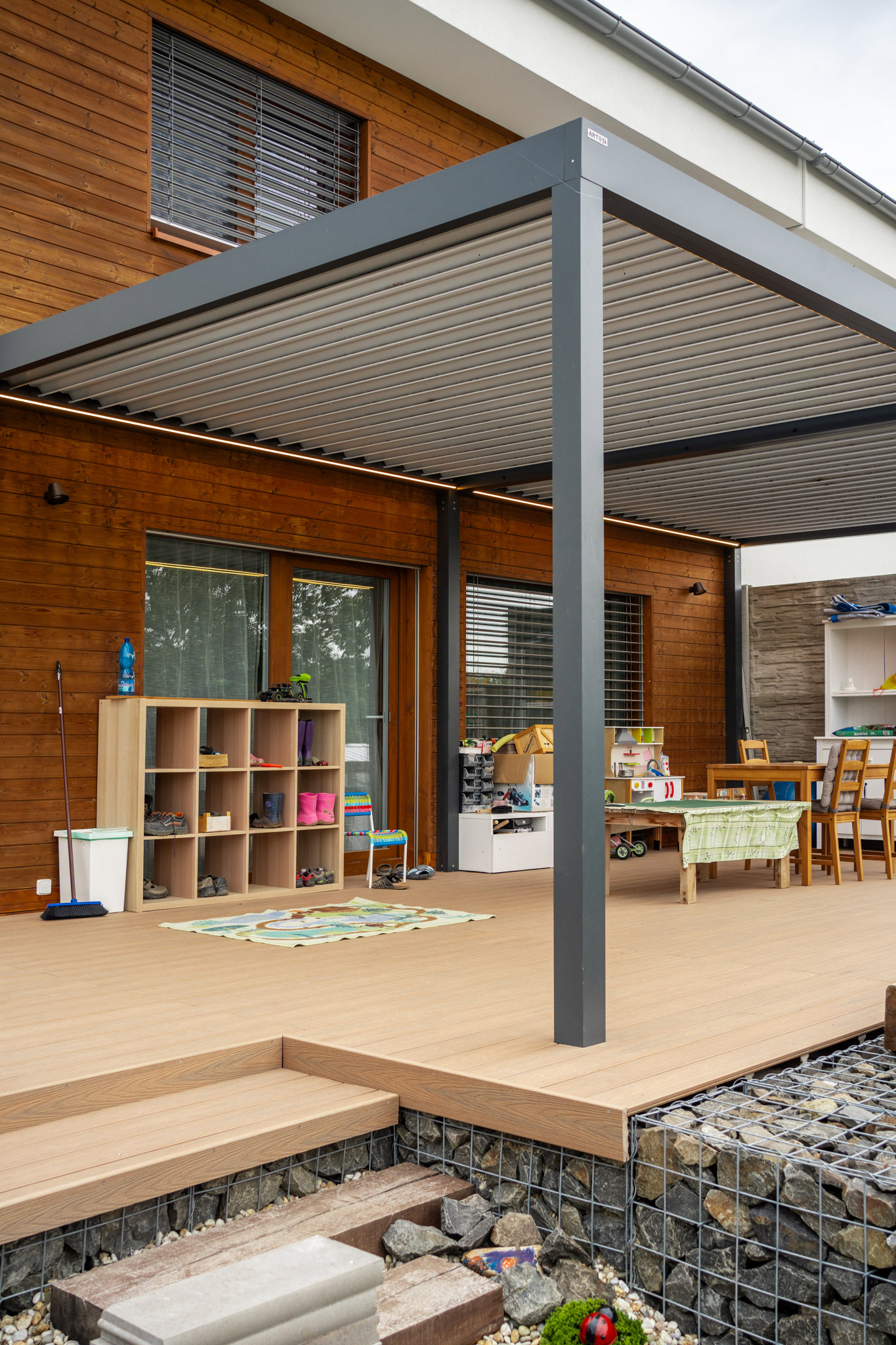 Zaletą pergoli ARTOSI jest możliwość rozdzielenia dachu na więcej niezależnych sekcji, które są obsługiwane indywidualnie według kierunku promieni słonecznych. Możliwość umieszczenia słupków do 1 m poza rogiem pergoli w kierunku do wewnątrz.